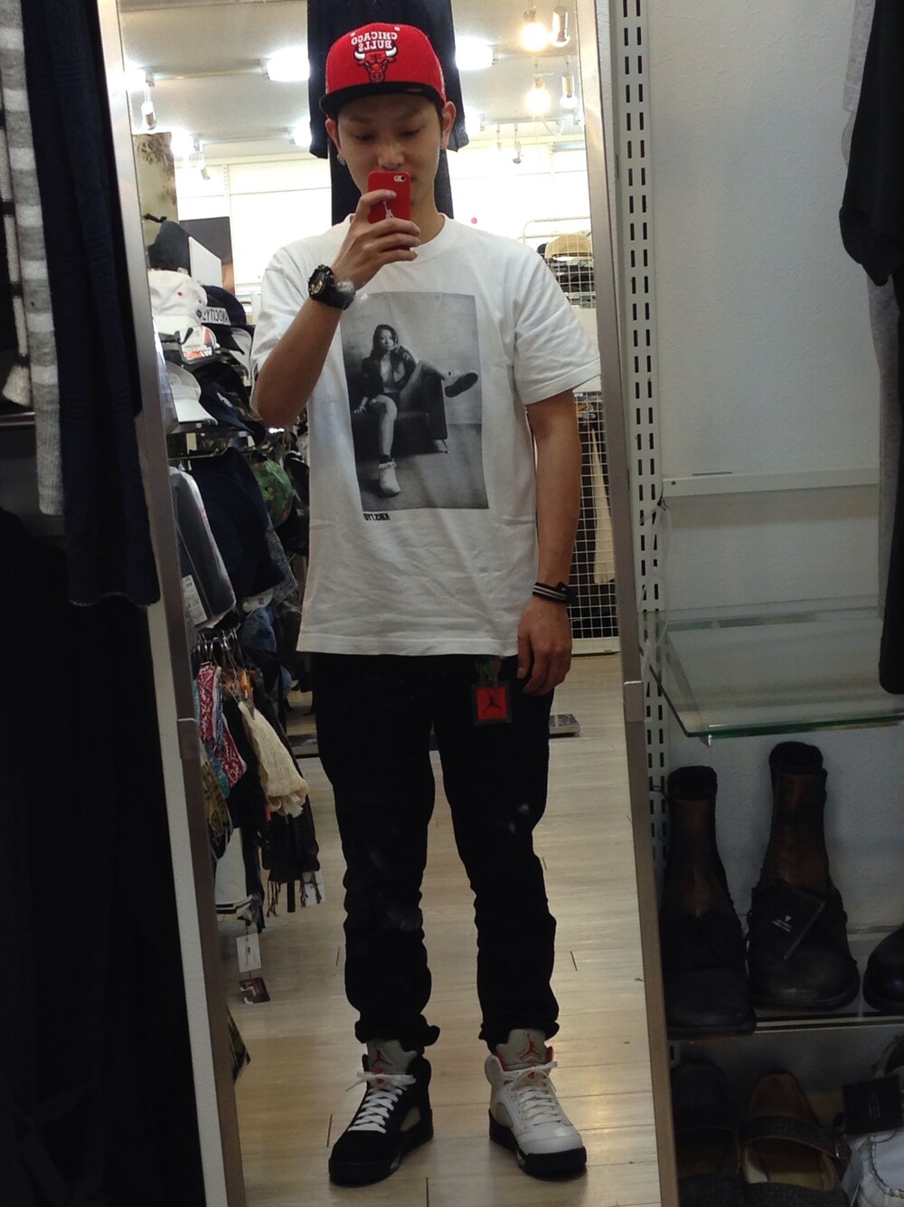 AJ5でバカ履きしてみました。 ナンバリングで合わせるか、銀ベロで合わせるか迷いましたがコチラで😎✌️ 履かなかったナンバリングは フォトTの彼女(一木恵里香)で合わせました。😁 一応、シンプルにガチャガチャしないようにしてみましたがどーでしょうか?🤔