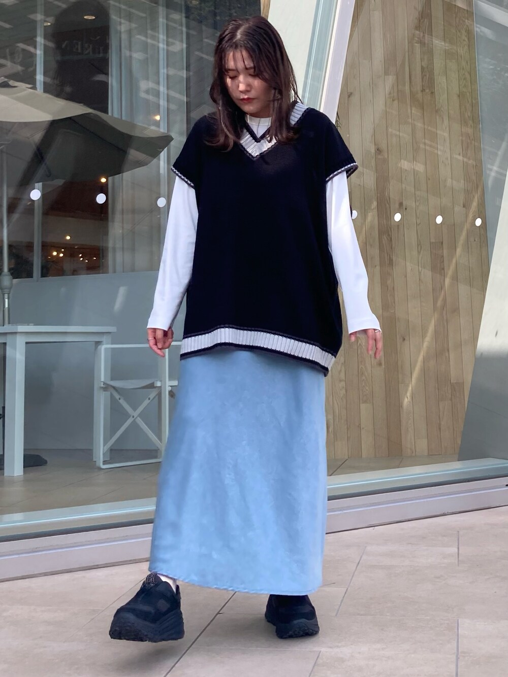 tomo(SALON adam et rope' アトレ吉祥寺)のベスト「Mr.SZK × JUNRed / オーバーサイズ チルデンニットベスト」を使ったコーディネート