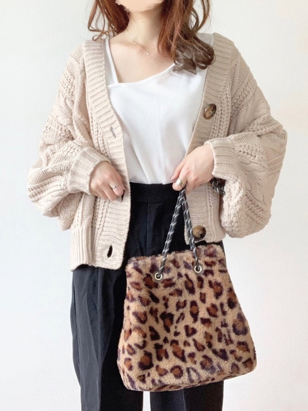 TOMOのカーディガン/ボレロ「袖ボリュームざっくり編みケーブルVカーデ」を使ったコーディネート
