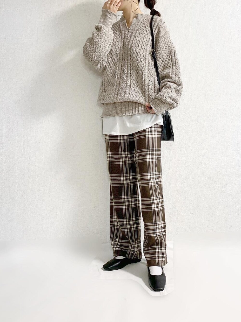 TOMOのニット/セーター「キーネックローゲージニットプルオーバー」を使ったコーディネート