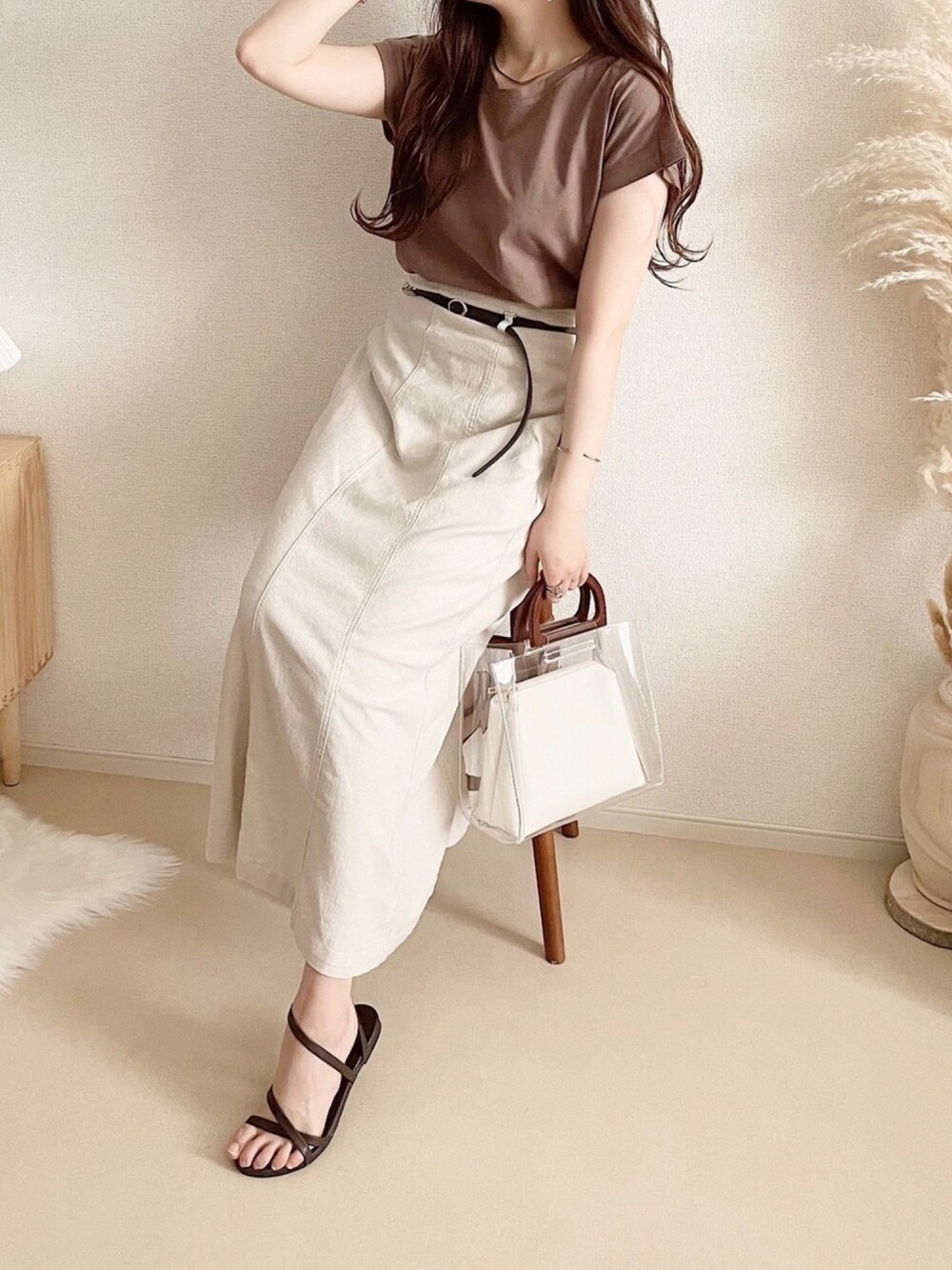 TOMOのTシャツ/カットソー「綿100%!フレンチスリーブシンプルカットソー」を使ったコーディネート
