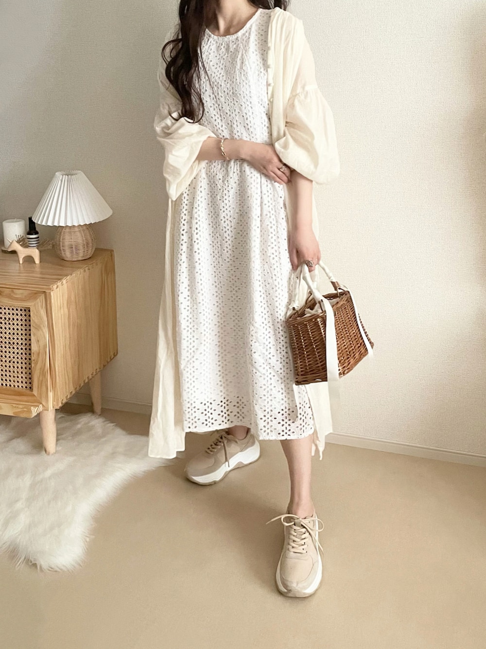 TOMOのワンピース「インドコットンレースノースリ―ブワンピース」を使ったコーディネート