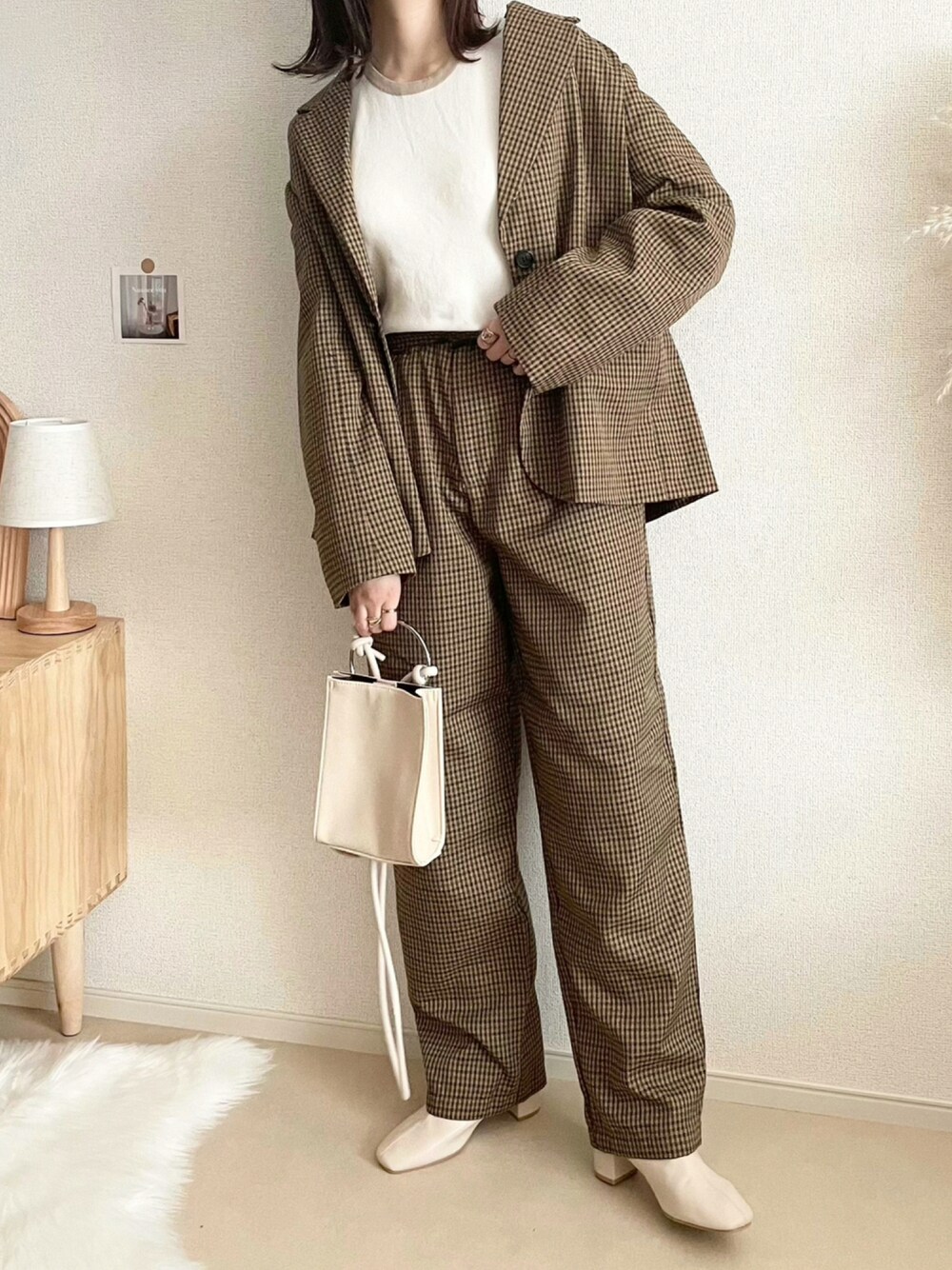 こんにちは☺️ いいね、セーブ、フォロー、フォルダ入り いつもありがとうございます(*_*)♡ kutir ▧ テーラードジャケット チェック柄が可愛い秋の定番 テーラードジャケット♡ ゆったりとした着心地ですが きちんと感もあり 一枚羽織るだけでお洒落度が増します🤤 別売りでパンツもあるので セットアップでも着用できます♩ ▧ タックストレートパンツ タックデザインとストレートシルエットが 体型カバーにもなって良き🤤 154㎝でブーツを履いてもギリギリの丈感なので スニーカーだと裾折りして 履けば問題ありませんでした☺️✨ 両ポケット付きなの嬉しいポイント♡ #kutir #kutir_pr 最後まで見てくださりありがとうございます🕊 少しでもコーデの参考になれたら嬉しいです✨ ---------------------------------- Instagram 【 @wear___tomo 】 PARTE 【 wear___tomo 】 ---------------------------------- 別ショット載せてます🧸˚✧₊