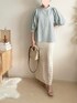TOMOのシャツ/ブラウス「構築的なパワーショルダー。サッカー素材袖コンシャスブラウス」を使ったコーディネート