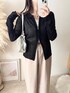 TOMOのカーディガン/ボレロ「【web限定アイテム】ラメシアー衿付きダブルジップカーディガン」を使ったコーディネート