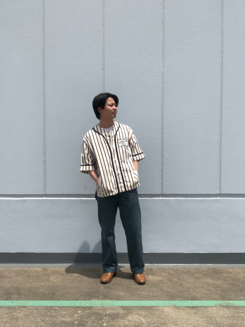 tomoyaのシャツ/ブラウス「Schott/ショット/STRIPE SS BASEBALL SHIRT/ストライプ ベースボール シャツ」を使ったコーディネート