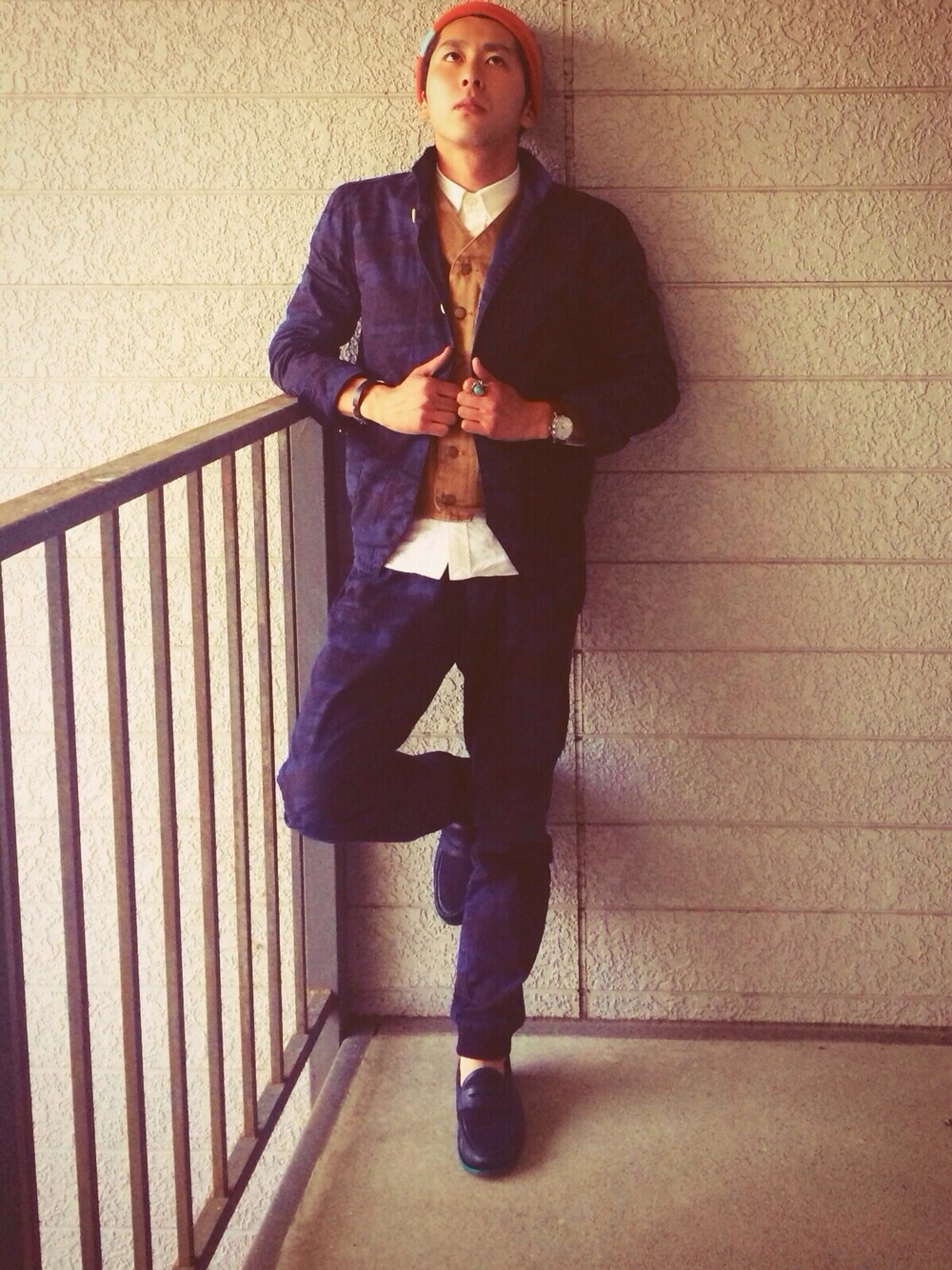 Tomoya Nakamuraのセットアップ「han kjobenhavn indigo camo setup(sailor jacket & filed chino」を使ったコーディネート