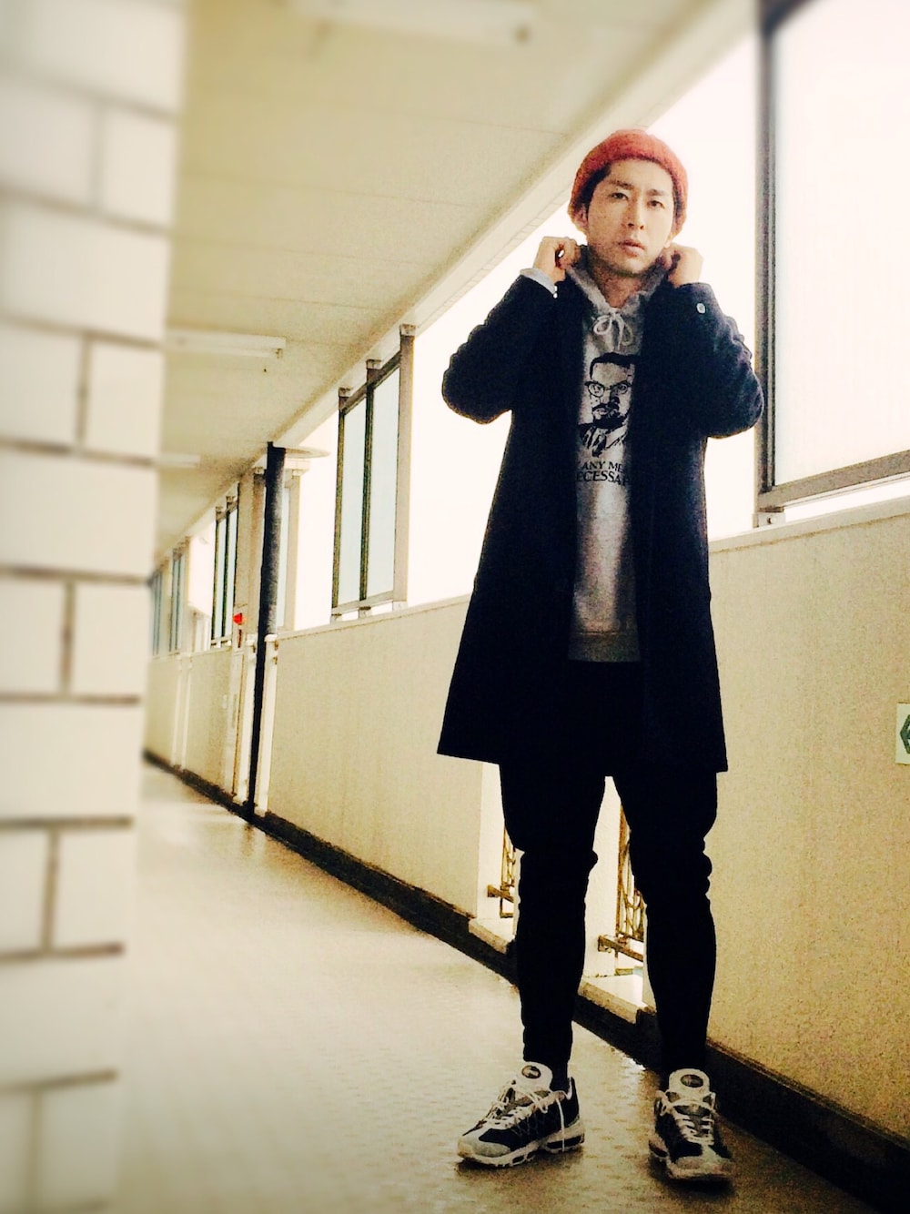 チェスター崩し、第二段。 マルコムプリントのプルオーバー×ジャージ×MAX95 案外しっくり。