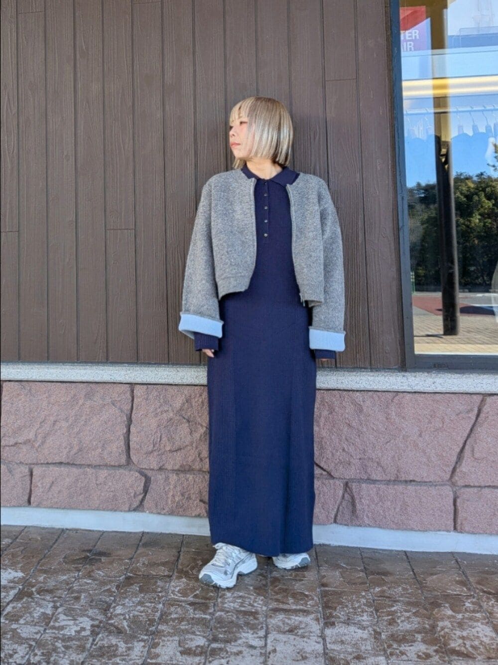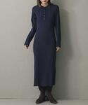 ダブルフェイスのニットカーディガン。 袖を折り返すと雰囲気が変わりカジュアルな印象に。 しっかりした生地感のリブニットのワンピースは体のラインを拾いにくくオススメ。 スタイル良く見せてくれます。