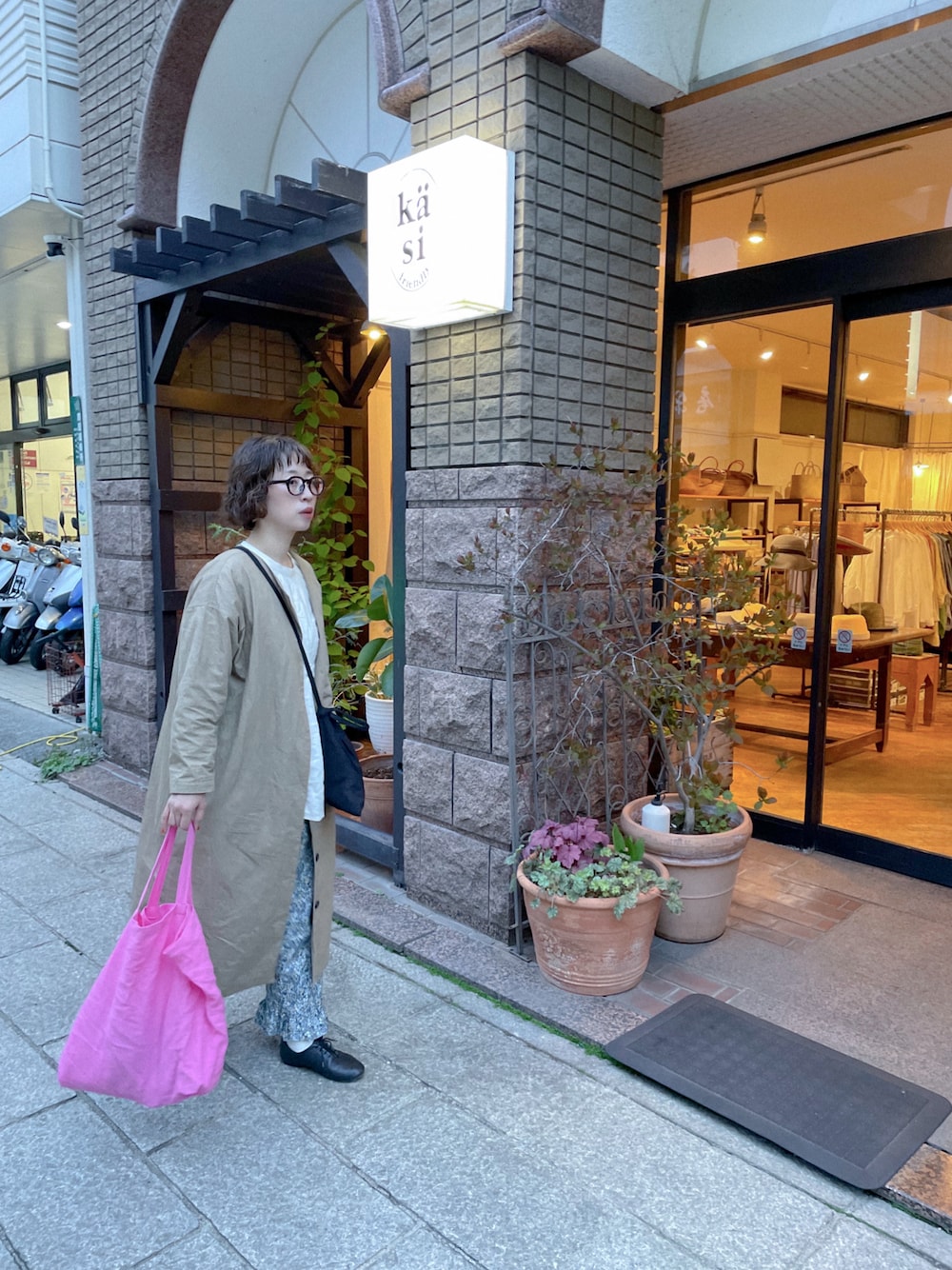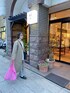 肌寒い日だったので お気に入りのノーカラーコートをきて。 ポイントにネオンピンクのトート🩷