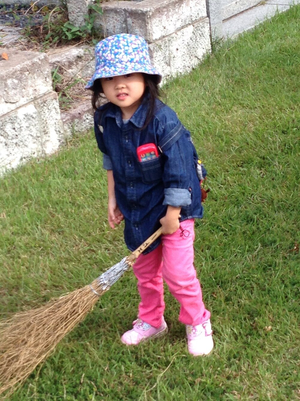 お彼岸のお墓参りへ。 蚊が多い場所なので全部前閉じて完全防備(笑 汗かきながら、蚊に負けずお掃除頑張ってます٩(๑>∀<๑)۶