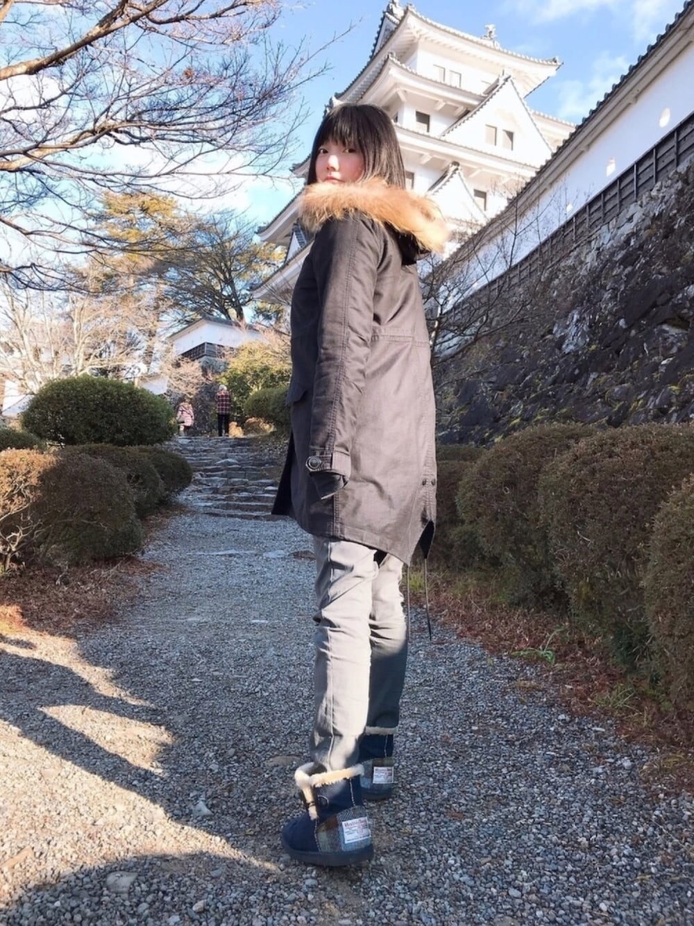 今日からスキー旅行⛷ の、前に大好きな城めぐり😘 ハレのモッズコートはずっと愛用♡
