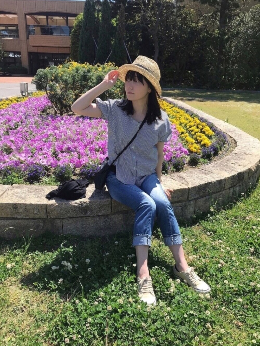 天気もいいし、暑そうだなぁーって 半袖着てみたものの…。 風が冷たくて寒い😨😨 張り切って麦わらぼぅも出したけどね…。 ROPE'PICNICのシャツも 風通しがいい生地だから余計に…。 カーデ着ます…