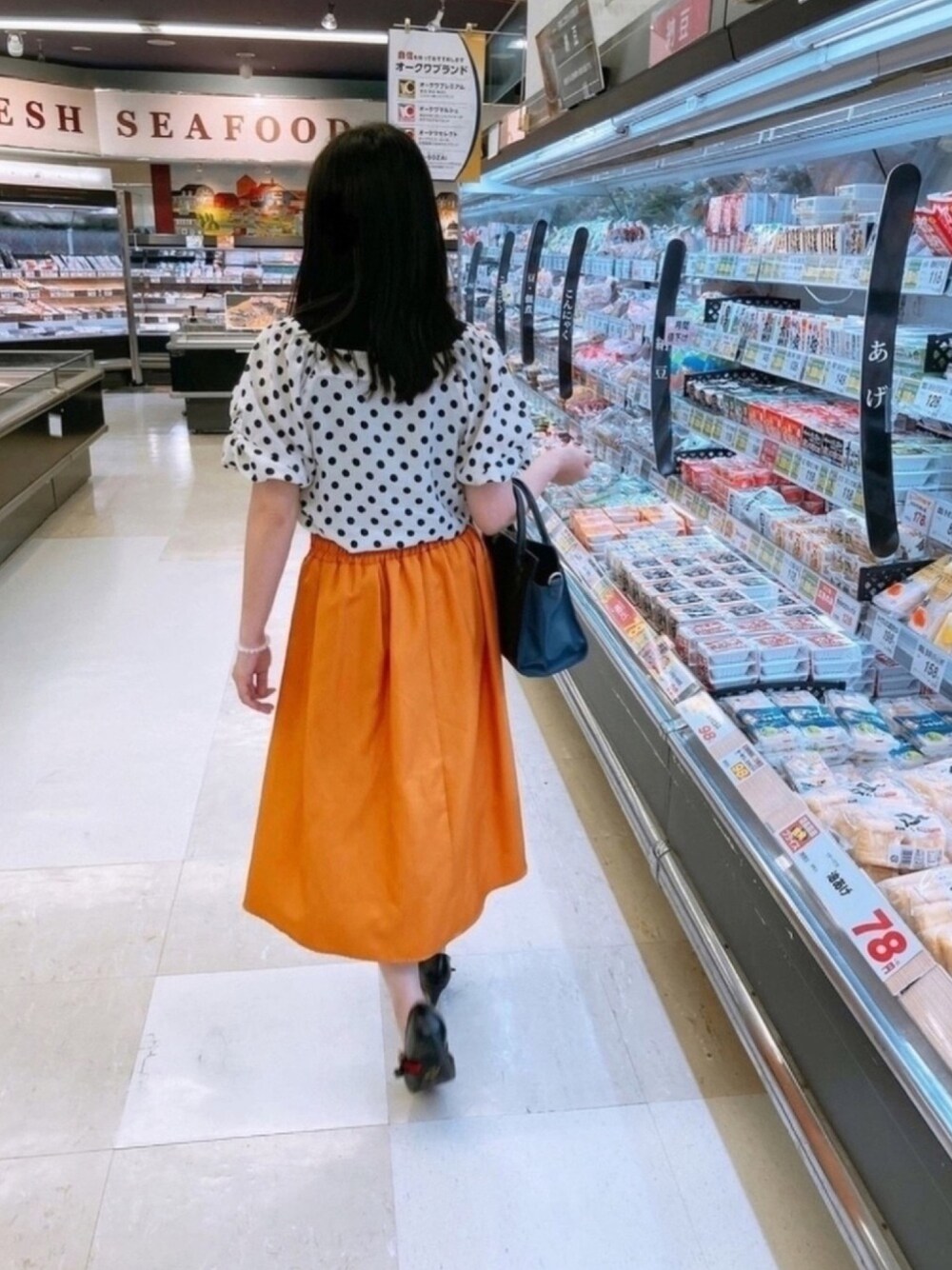 最近…。 豆腐とお揚げにハマってます😅 スーパー行くと、とりあえず直行🏃♀️🏃♀️ お出かけした先でも…。 見知らぬスーパー見つけると 豆腐コーナー直行直帰。 ロペピクニックのオレンジスカート🧡 元気色の服着ると元気になれます✨ ビタミンカラーってすごい🍊