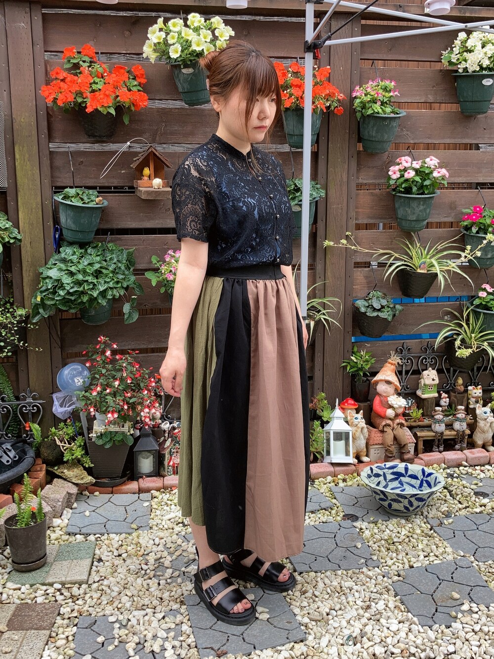 湿気すごいよー😭 ミストみたいな雨降ってるよー☂️ チャオパニックのアウトレット品で ゲットしたバイカラーのスカート✨ 今年も着ちゃうもんね‼️ あれ?3色か😂 トリコロールだったね😂
