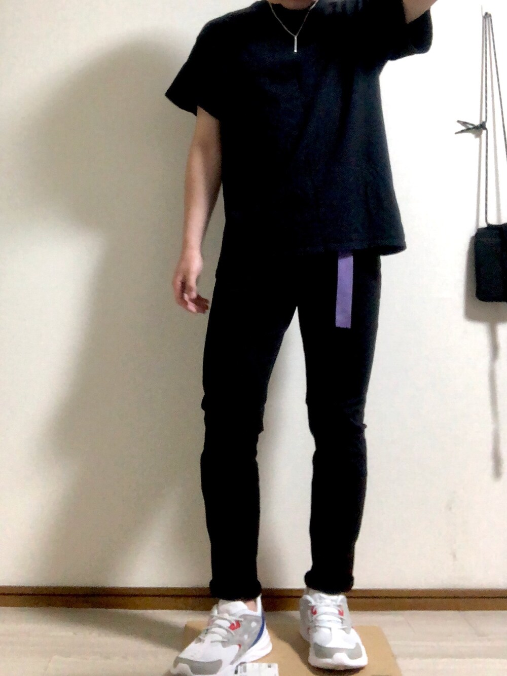 久々の投稿です🙇♂️暑くなってきました💦 全身ブラックで大人っぽく👨 シンプルすぎるのでネックレスとガチャベルトで抜け感を、 靴は白で重くなりすぎないようにしました!