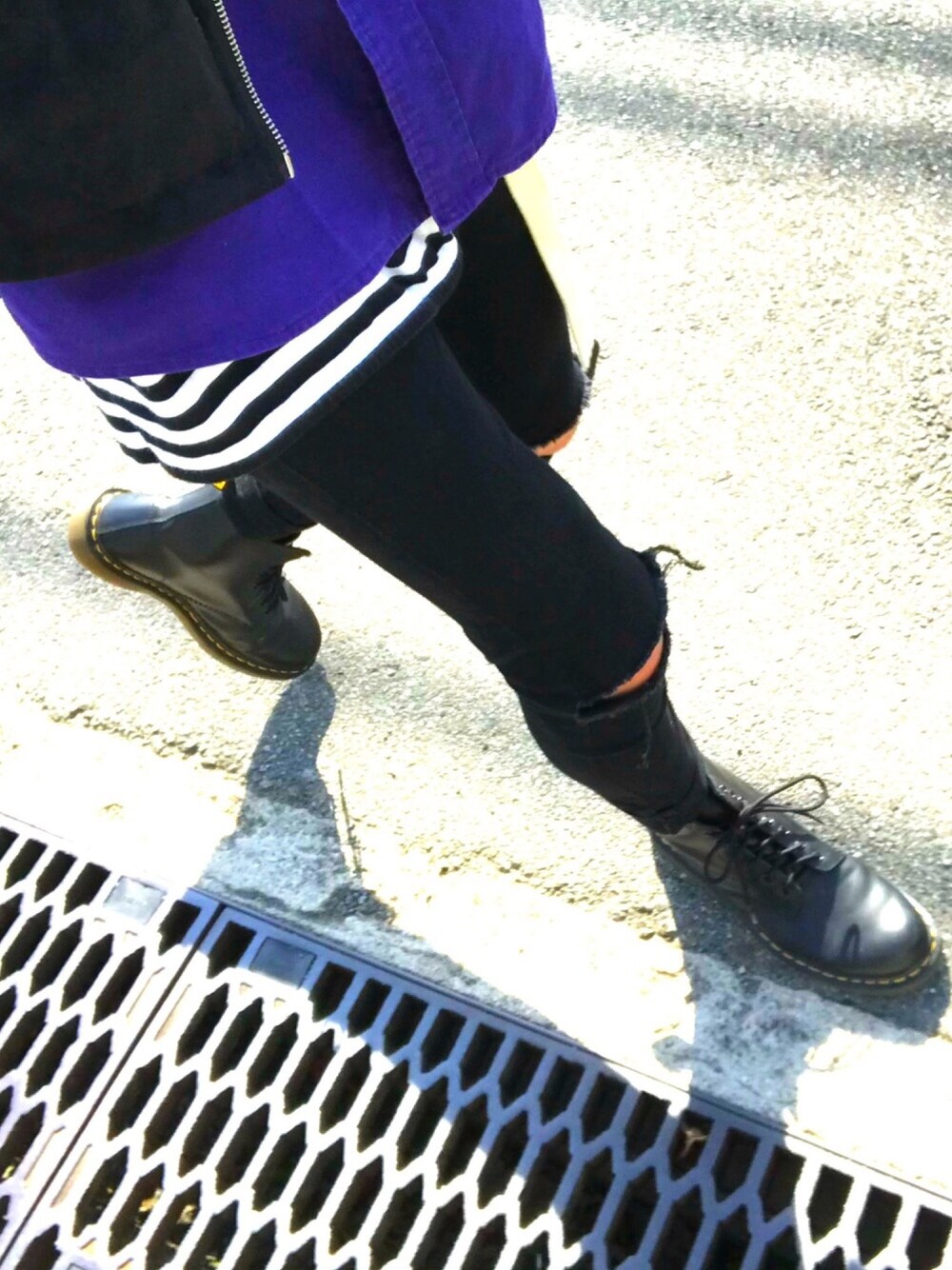 ヌバックのライダースとラルフローレンのピープルビッグシャツと相性の良いイエローソックスとドクターマーチン💛