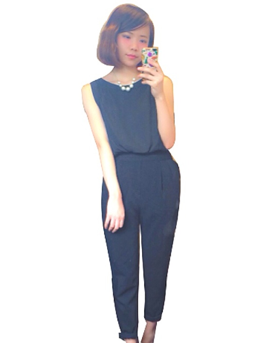 ブラック系のサロペット/オーバーオールを着用したレディースの春コーディネートの1枚目の写真