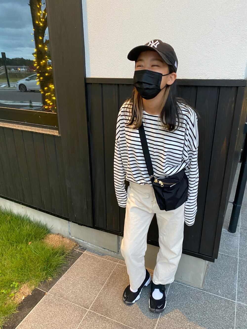 Nai.85のデニムパンツ「キッズ ゆったりハイウエスト 無地 ワイドストレートデニムパンツ(フルレングス)」を使ったコーディネート