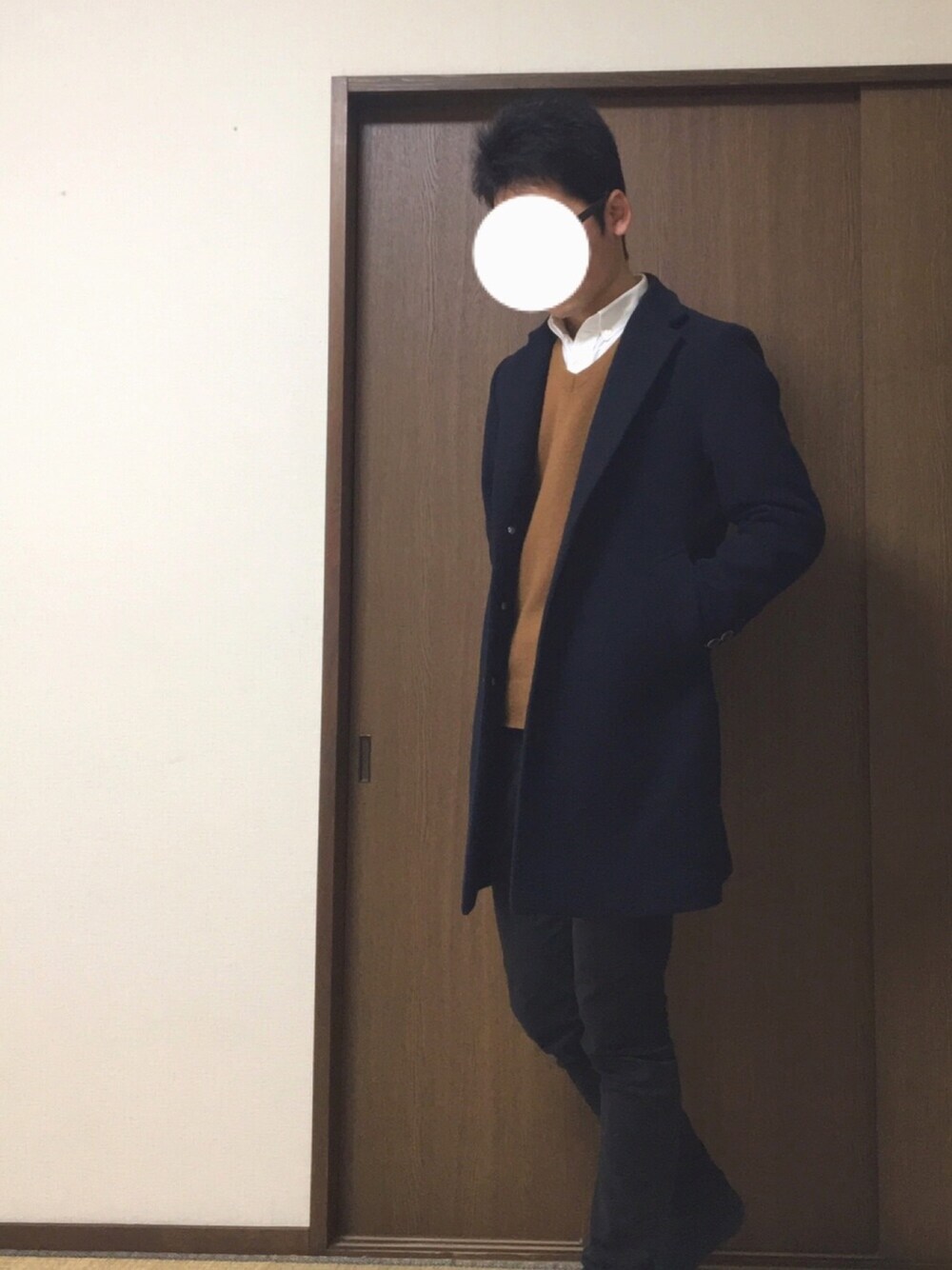 とんのチェスターコート「ポリエステルメルトンチェスターコート」を使ったコーディネート