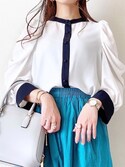 1617大人気!バイカラードレープスリーブシャツ