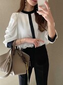 1617大人気!バイカラードレープスリーブシャツ