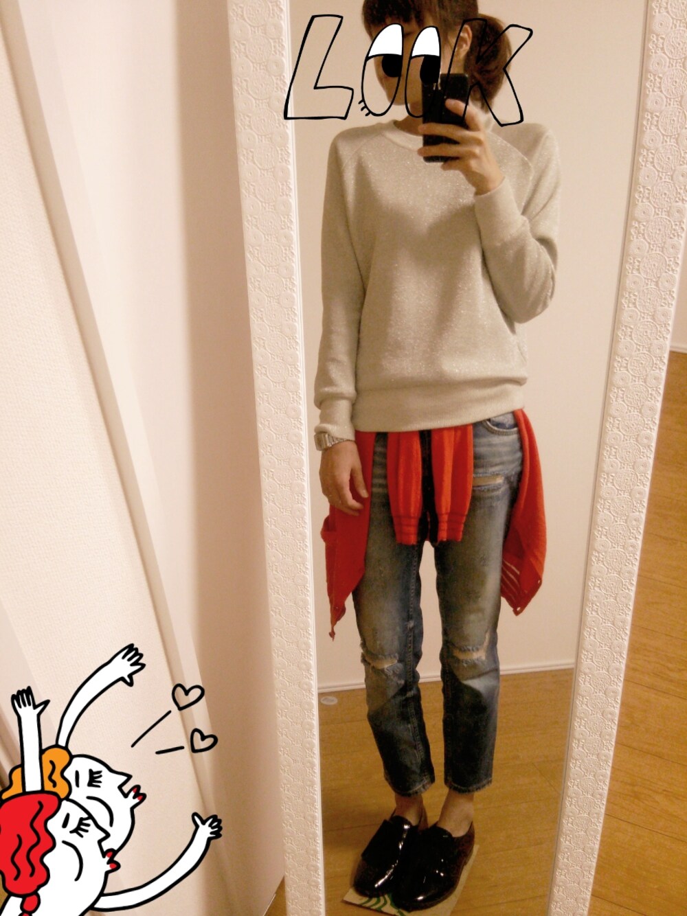 トップス→セレクトショップにて カーディガン→BabyJane Cacharel パンツ→ZARA 靴→Fin