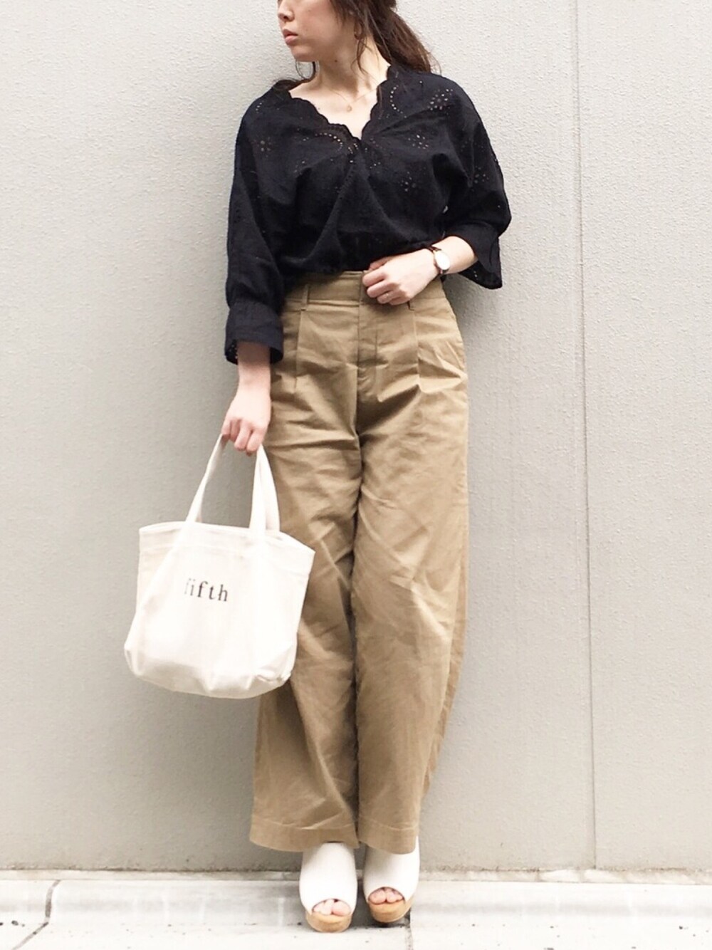 チノパン✖️モノトーン ユニクロのハイウエストワイドチノパンは、着回ししやすくて重宝しています✨