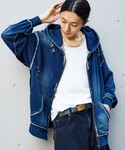 とんこつのパーカー「ヴィンテージブリーチ デニムライク フルジップスウェットパーカー/ダメージ加工」を使ったコーディネート