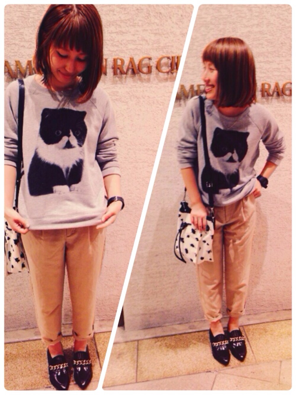 こんにちは!殿元です! セーブ、フォローありがとうございます♥︎ 最近、知人やスタッフもWEARを見てくれているみたいで、 よく、文書真面目か!!って言われますが、恐らく真面目です。しかし、楽しく更新させて頂いてます!! 本日は、以前にもご紹介したSEA NYから猫ちゃんスウェットが入荷してきました!! このつぶらな瞳の猫ちゃんは動物好き、猫好きにはたまらない一着です。 インパクトがありますので、ボトムはシンプルに、 新入荷のファビオルスコーニのチェーンローファーでトレンド感を出しました。 アメリカンラグシーでは続々と秋冬の新商品が入荷しており、店頭でしかご覧いただけないアイテムもありますので、是非見にいらしてください!!