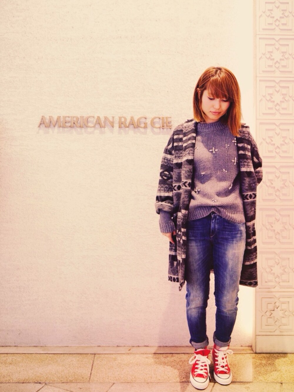 今日は久々にnavasanaのコーディネートです! 今年はグレートーンのコーディネートがかわいいですよね..♡ デニムにスニーカーとカジュアルなアイテムを、女性らしいビジュー付きのニットに合わせたところがポイントです! また見にいらしてくださいね♡
