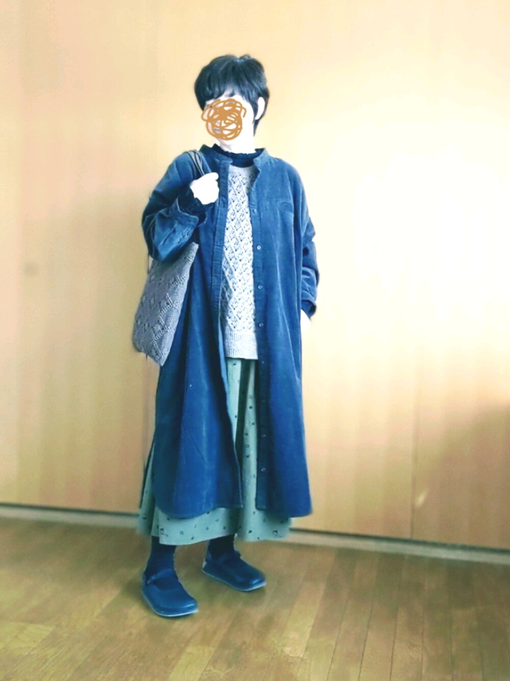 コーデュロイのバンドカラーワンピースは着回しが効くので便利です。 スリットがかわいいです。 あと、刺繍のスカートがお気に入り。