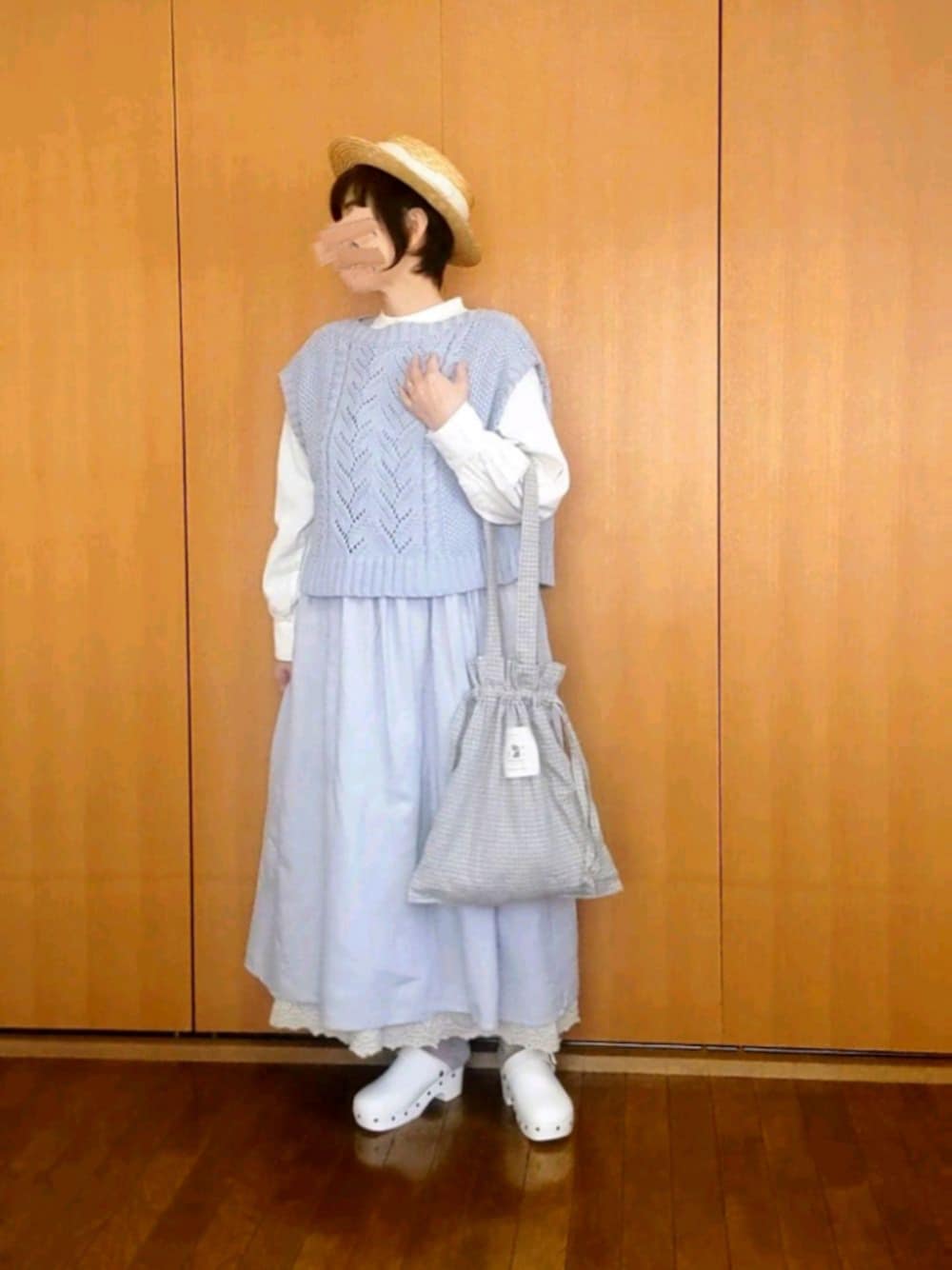 お気に入りのベスト💙これまたお気に入りのスローリネンのジャンスカとあわせました🌼🎵 なんか気がついたらwearがブルー系💠の洋服だらけになってた😁 ✳️izuさん ✳️ひろっちゃさん ✳️みっちゃん ✳️さりちゃん ✳️タブンネさん 前コーデの素敵なフォルダinありがとうございます🥰とっても嬉しいです🌼