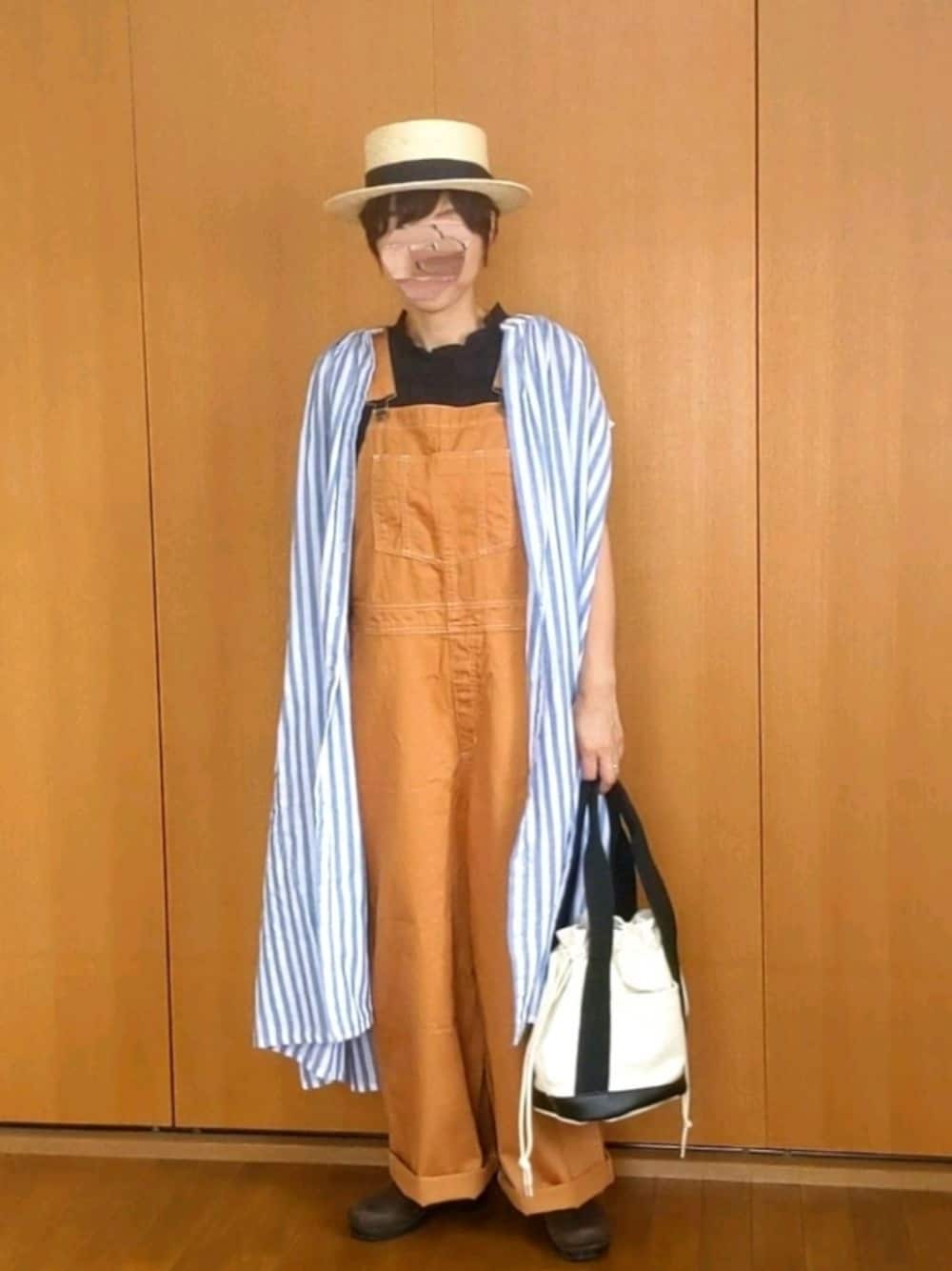 🍊オレンジサロペ🧡×ストライプギャザーシャツワンピ💙 色の組み合わせがとっても気に入ったコーデになりました✨ いいね❁お気に入り 素敵なフォルダinとっても嬉しいです🥰ありがとうございます❤