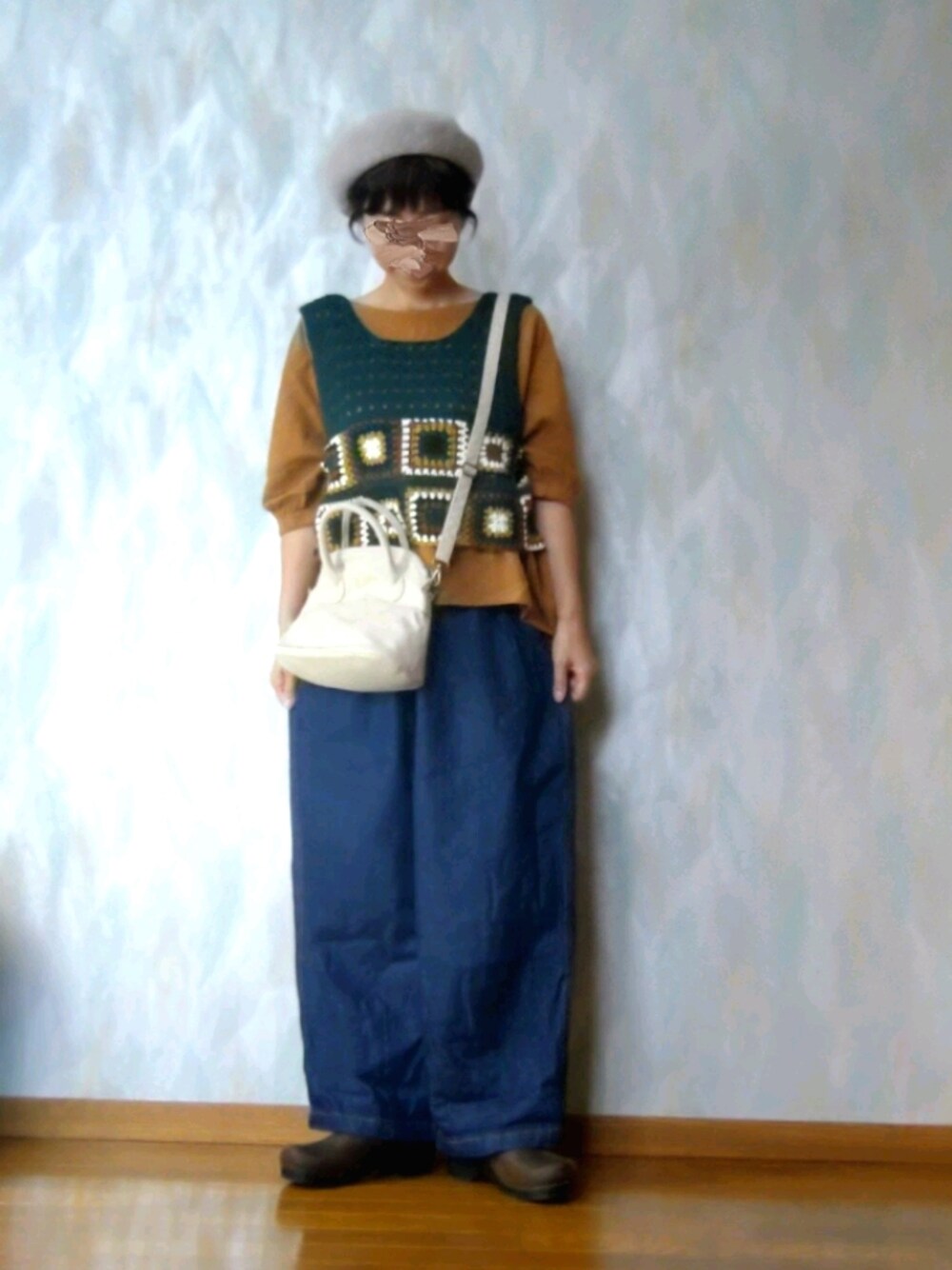 とんピン♪のベスト「前後2WAYクロシェ編みカラーベスト」を使ったコーディネート