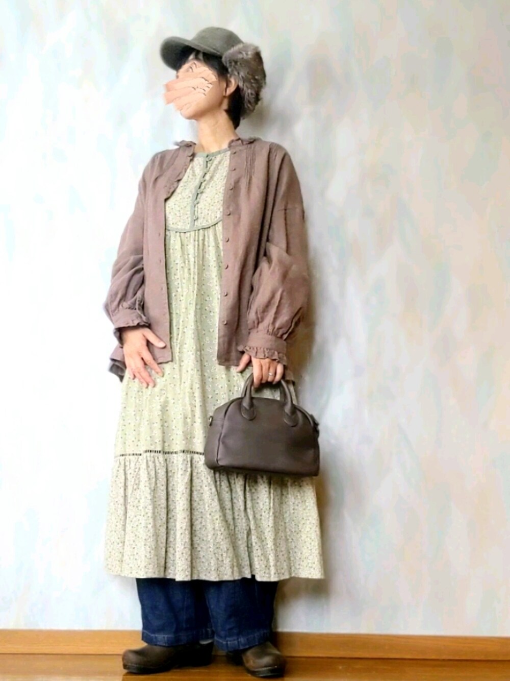 ☘️グリーンの花柄ワンピを秋風に着てみました🍂 いいね❁お気に入り 素敵なフォルダinとっても嬉しいです🥰ありがとうございます❤