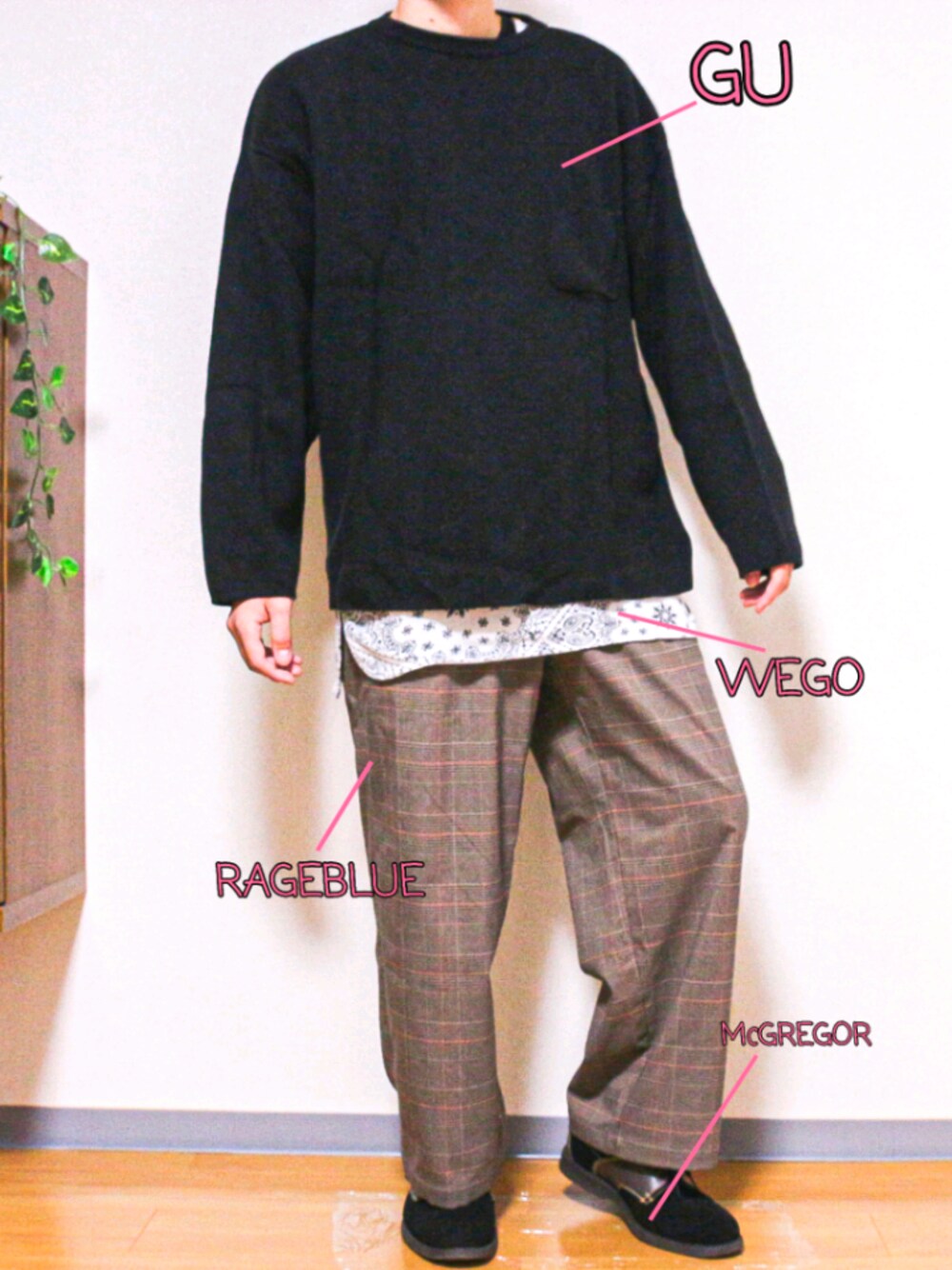 ゆったりコーデ! このニットはGUで数年前に買った記憶があります…w RAGEBLUEのワイドパンツ非常に履き心地良いです!