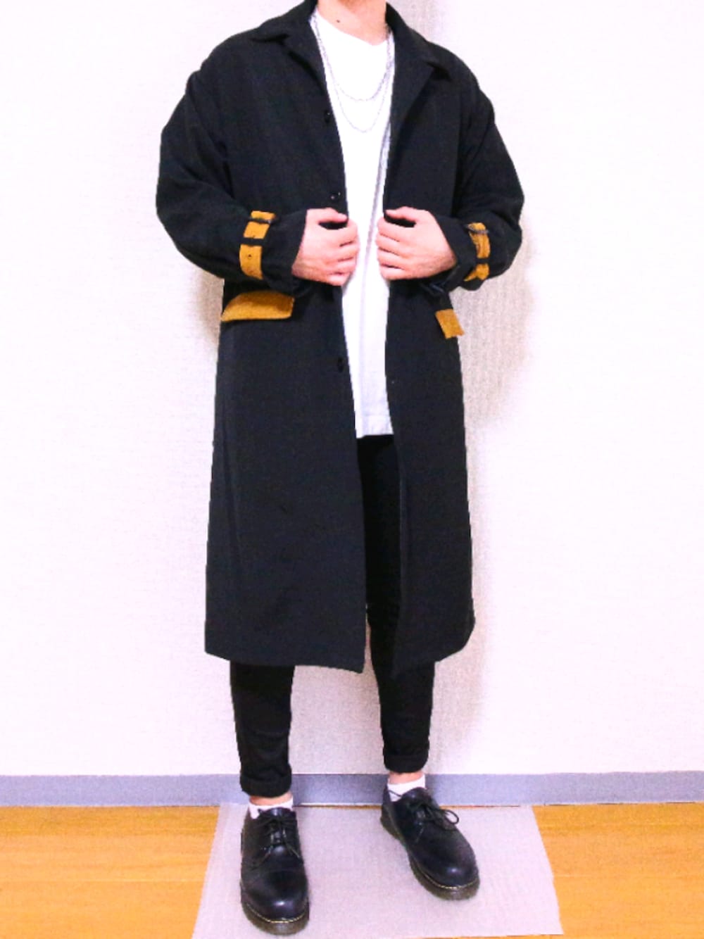 Yuu のステンカラーコート「KUUUPY - ヨーク付き配色オーバーステンカラーコート」を使ったコーディネート