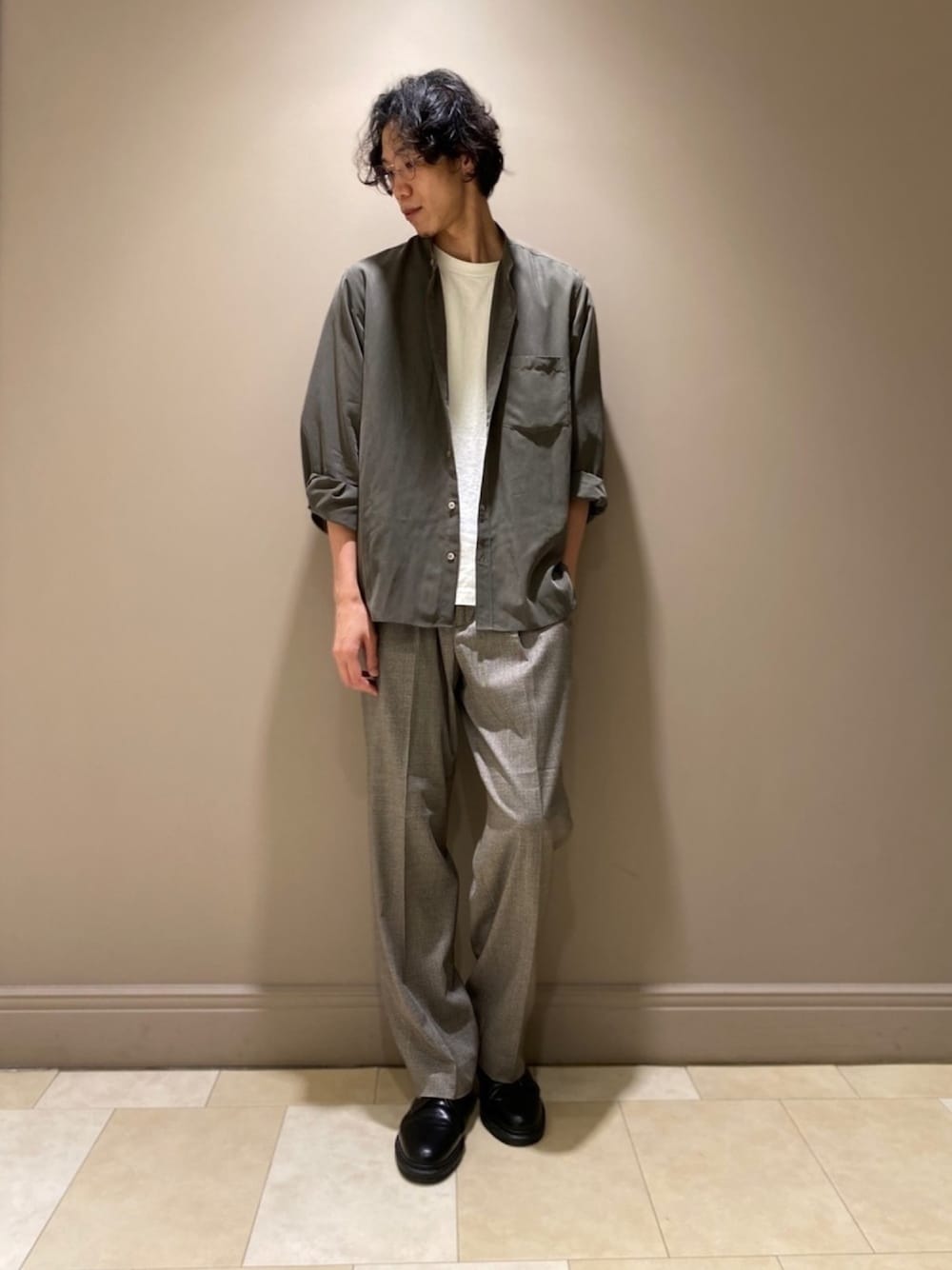AWコーディネート 新規入荷のスエードシャツを使ったコーディネート。 シルエットはゆるっとリラックス感ありだが、大き過ぎないのでスタイリングしやすくgood!! 素材も微起毛しているので肌触りも良く、晩夏あたりには羽織りとして活躍すること間違いなし!! ワイドパンツと合わせてキレイめゆるコーデがオススメ。 是非お試し下さい。