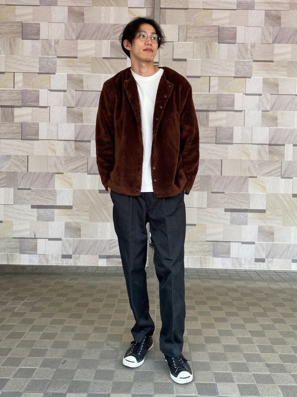 別注アイテムを使ったスタイリング agnes b. とAURALEEのアイテムを使ったコーディネート どちらもアダムエロペでの別注となってます。 agnes b. →毎回好評頂いてるコンプレッションカーディガンのシルエットを元に暖かいボア素材で作りました。 AURALEE →ワイドパンツだが、テーパードがかかったシルエット。 フィンクスの独特な素材感は必見です。