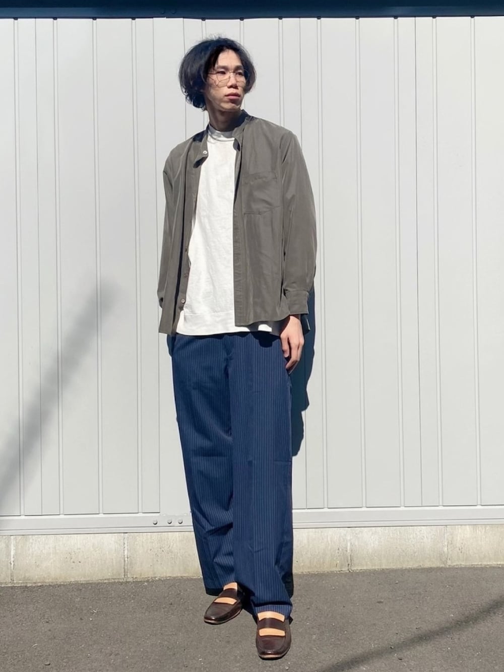 シャツは羽織りスタイルで