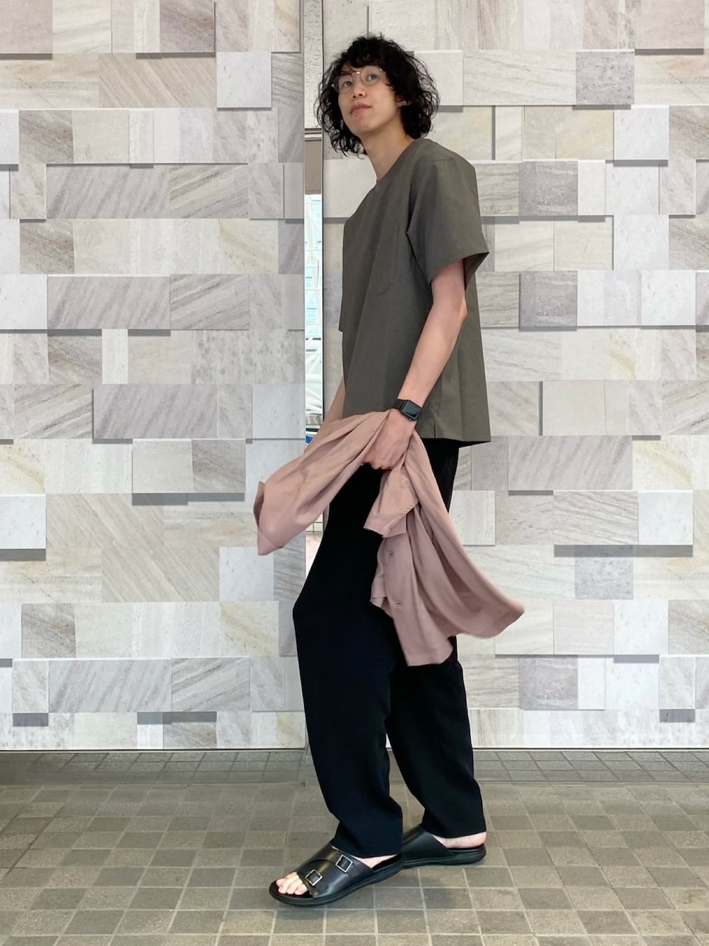 夏に最適なトップス 以下商品詳細です。 トップス Lサイズ着用 【シルエット】 ゆとりのあるシルエットだが丈感も長すぎずジャスト寄りなアイテム。 【素材感】 機能性素材なので肌に張り付く事なく着れます。 【着心地】 サラっとしてるので汗ばむ時期でも快適に着れます。 サンダル 43.0着用 【サイズ感】 普段のスニーカーサイズで選ぶとほぼ同じサイズ感。 【履き心地】 底が厚めなのでクッション性があり履きやすいです。