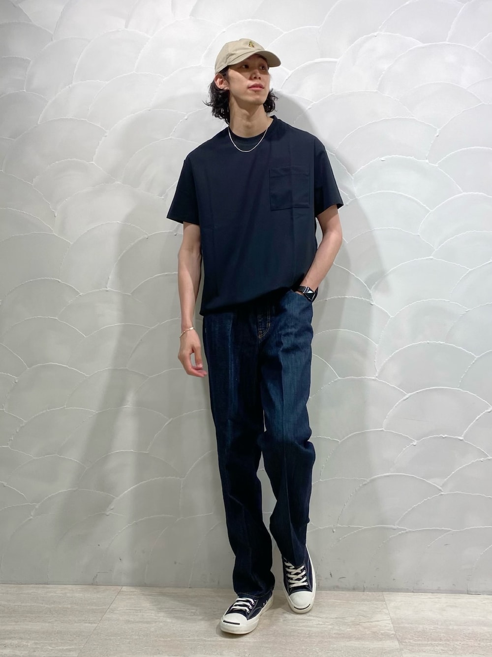 夏にはサラ、ツル素材のTシャツ 以下商品詳細です。 トップス Lサイズ着用 【サイズ感】 レギュラーシルエットで187cmLサイズ着用してます。 丈はそこまで長く無いので高身長の方はハイウエストのパンツと合わせると良いです。 【素材感】 表面はツルっとしておりシワになりづらくサラッと着ていただけます。 【着心地】 暑い夏でも快適に着ていただけます。 ボトムス XLサイズ着用 【サイズ感】 ゆったりとした作りで180cmオーバーの高身長の方でも丈感気にせず着れます。 【素材感】 ライトオンスデニムなので通常のデニムとは違い柔らかく、蒸れる心配もなく着れます。 【着心地】 ストレッチもきいており履き心地抜群です。