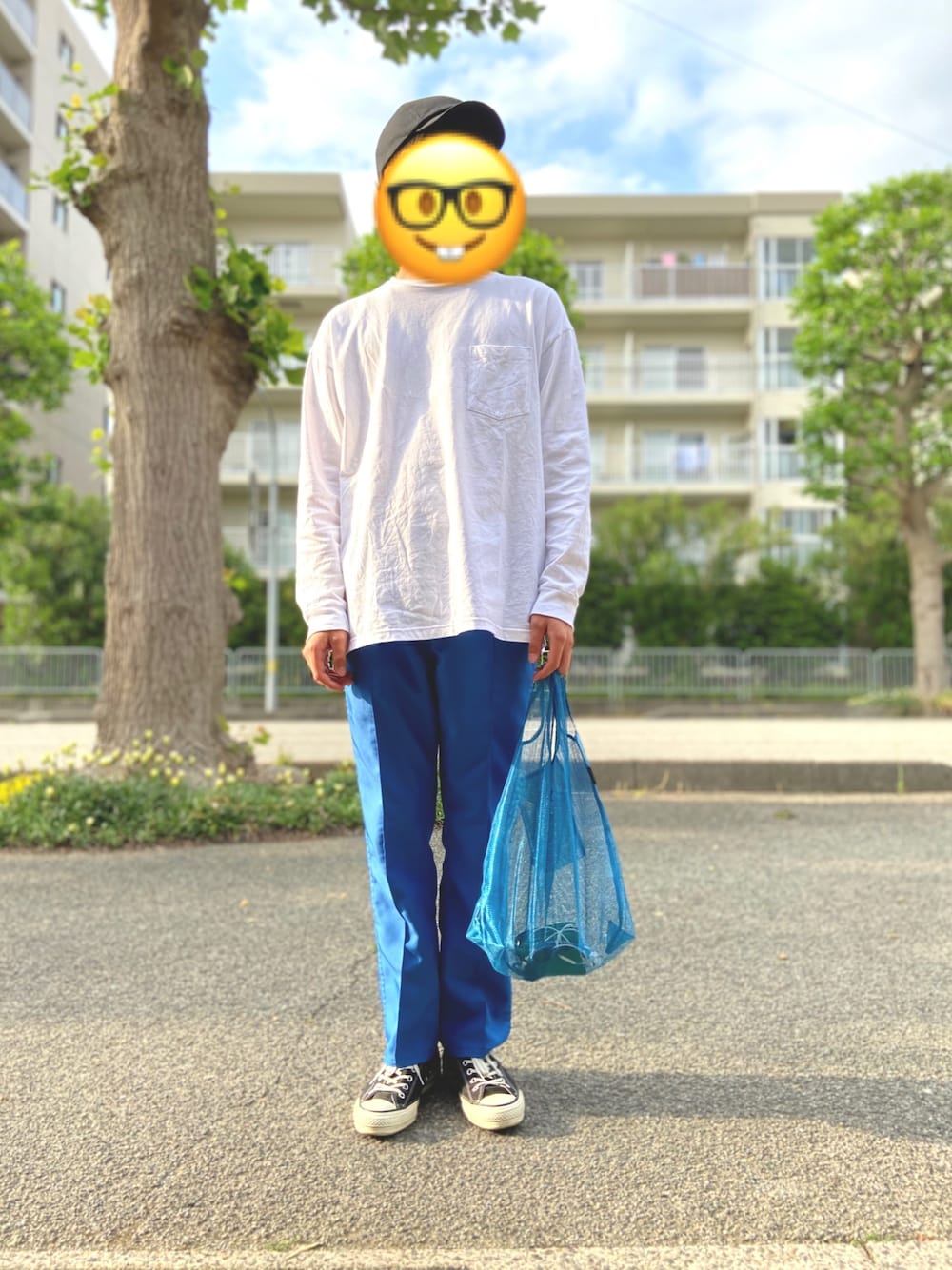 今回のコーデのポイントは ボトムスの色とバックの色を合わせたところです。青色は見た目も爽やかな感じでとても良いーです! これから暑くなるけどこれをガシガシ履いて行きたいと思います!