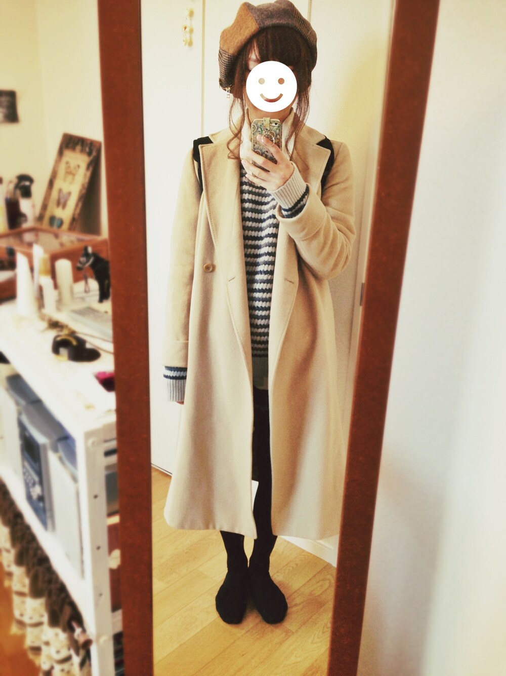 久しぶりの投稿! 古着のロングコートとしましまニットを合わせてカジュアルに!風吹くとスーパーマンみたいになるよねロングコートって笑 東北はまだまだ寒いぜ… (あ、靴はスニーカーを履きましたYO)