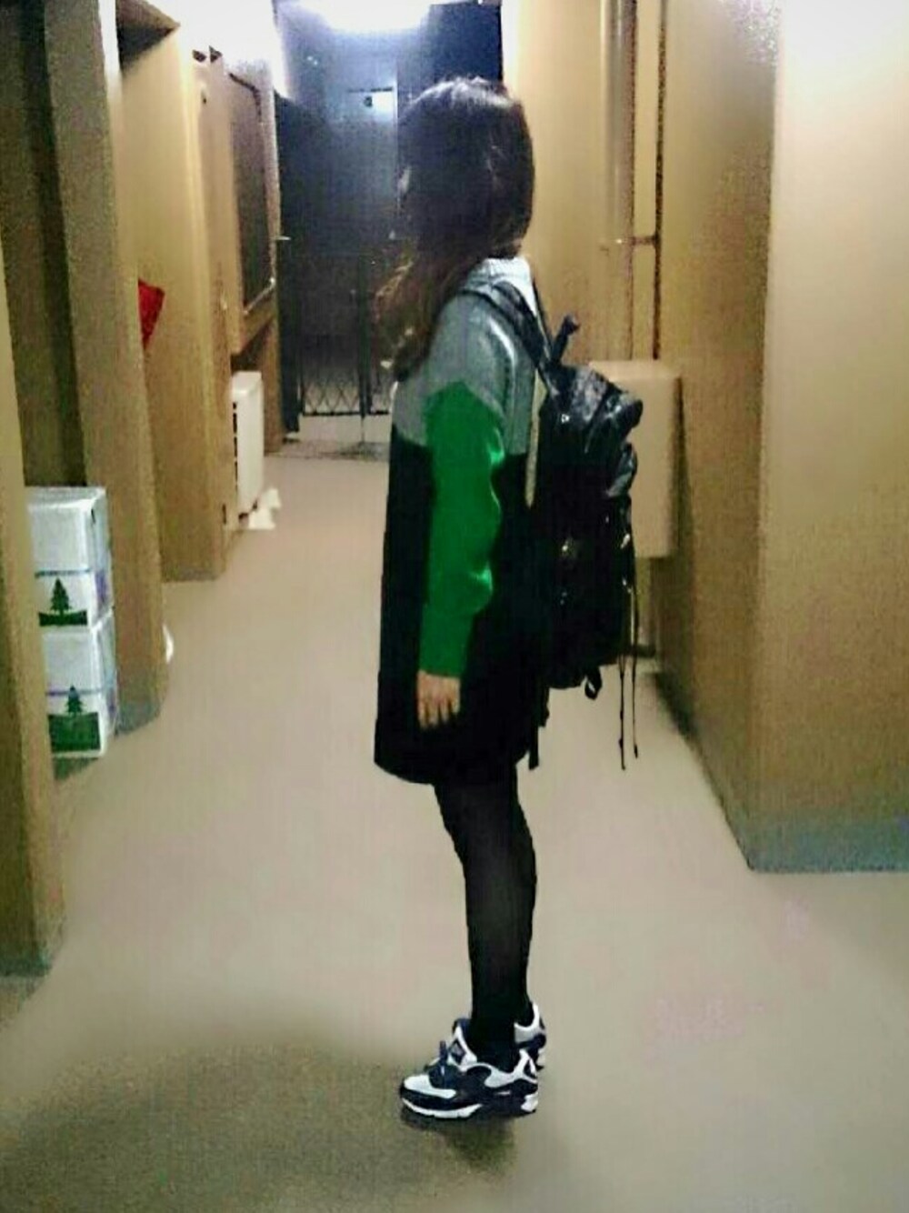 ジーナのワンピ\(^^)/ ワンピは楽チン♪ 足元はエアマックス!! 黒リュックでカジュアルday!! しかし、寒いー⛄