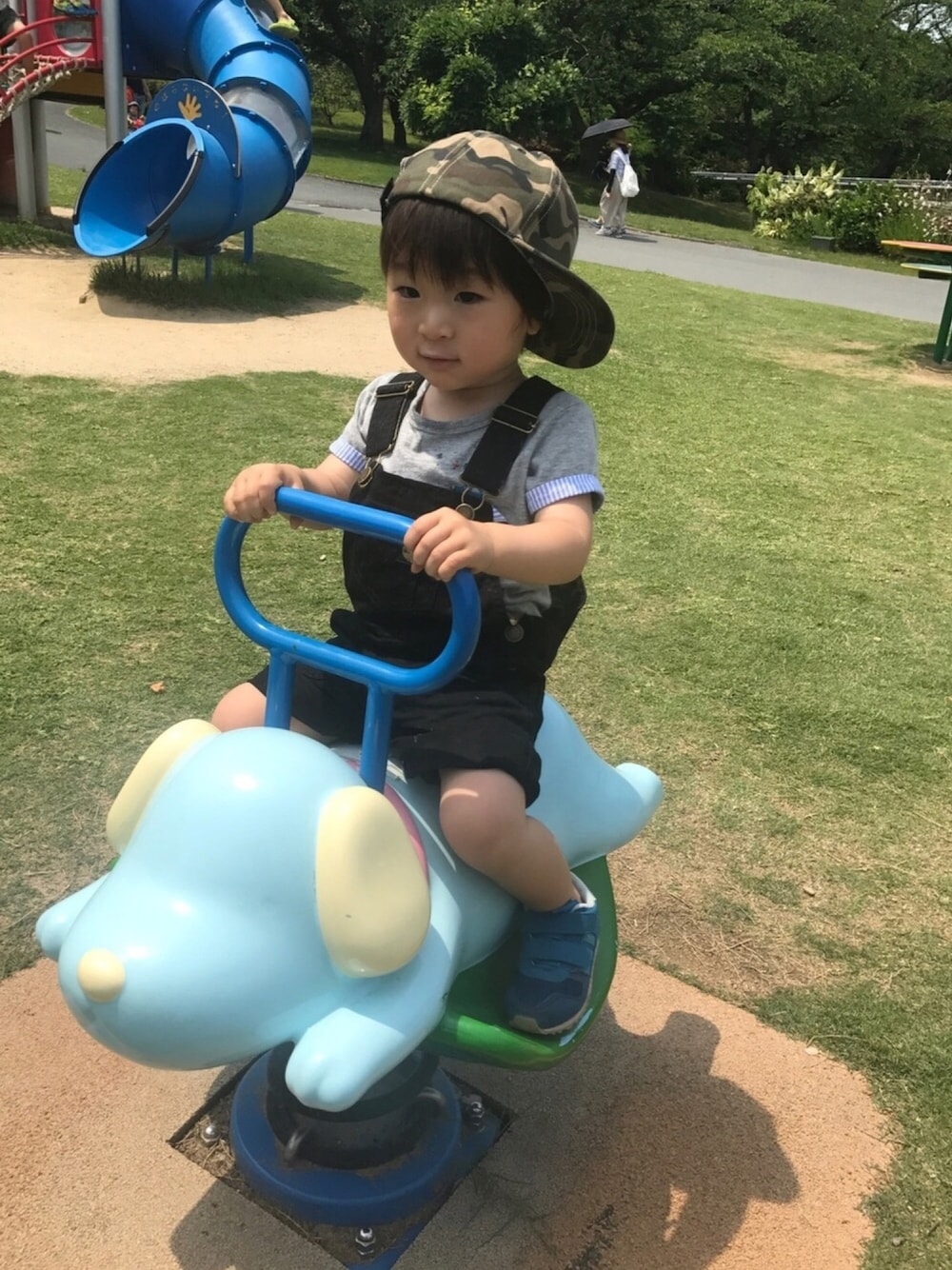 いいね、セーブ、コメントありがとうございます❤️ カモフラキャップでグリーンフェス④参加させてください❤️ そらのすけくんママよろしくお願いします‼️😆 動植物公園に行った日のコーデ☀️ 公園や動物園はやっぱり子供らしいコーデが良いかなとサロペットで😊 コメントなかなか開けれず😭