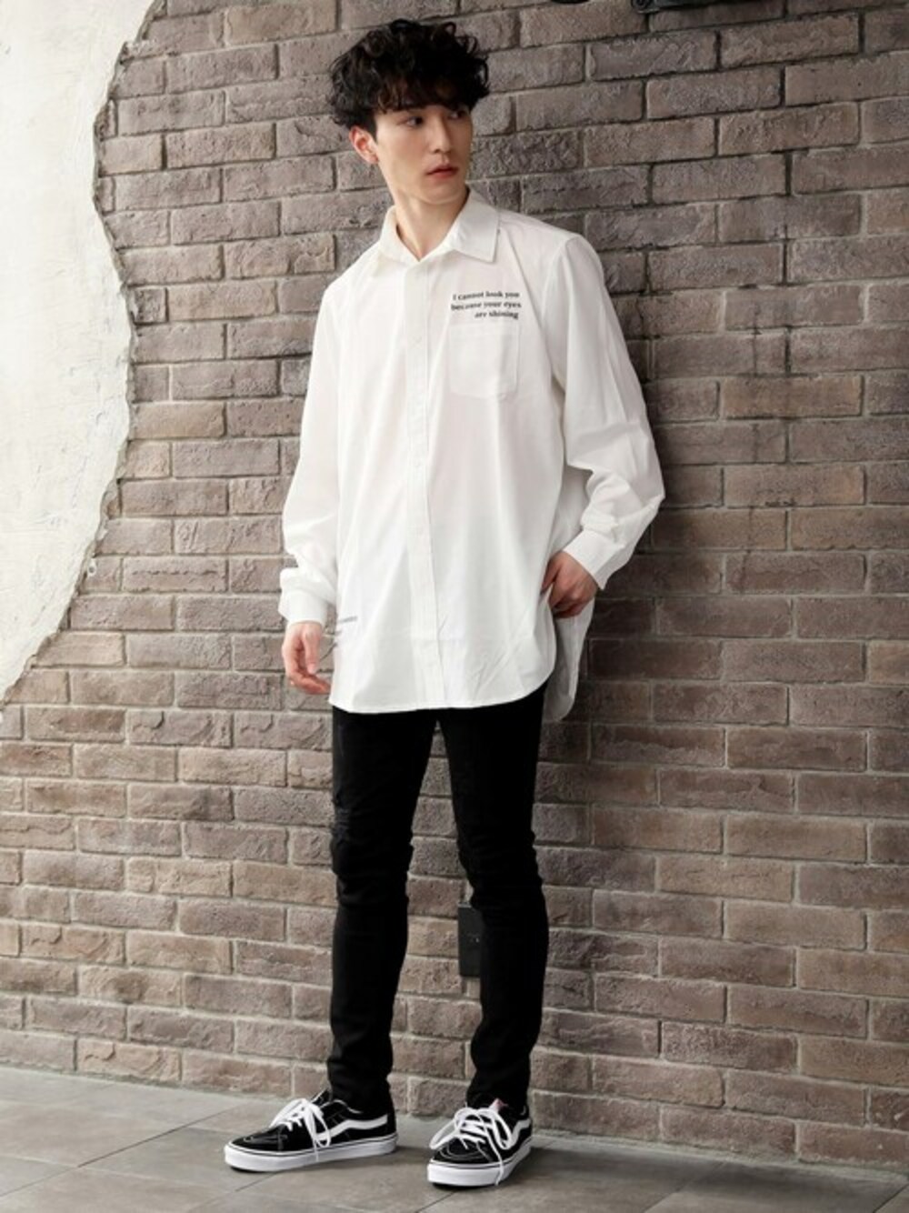 TopIsm-トップイズム-(TopIsm)のシャツ/ブラウス「バックプリント ビッグシルエットロング丈オープンカラーシャツ」を使ったコーディネート