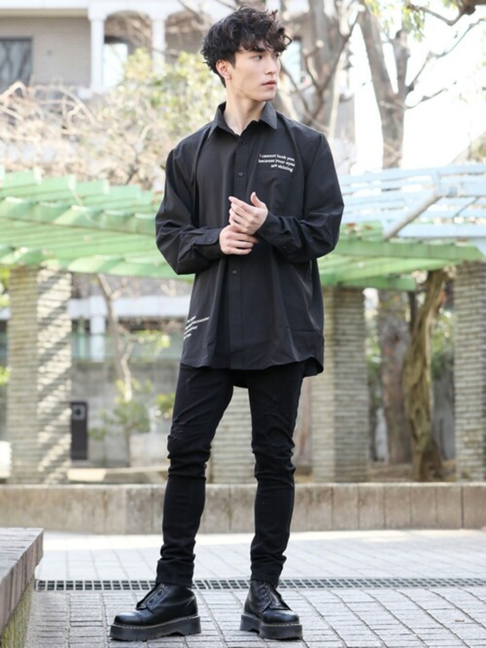 TopIsm-トップイズム-(TopIsm)のシャツ/ブラウス「バックプリント ビッグシルエットロング丈オープンカラーシャツ」を使ったコーディネート