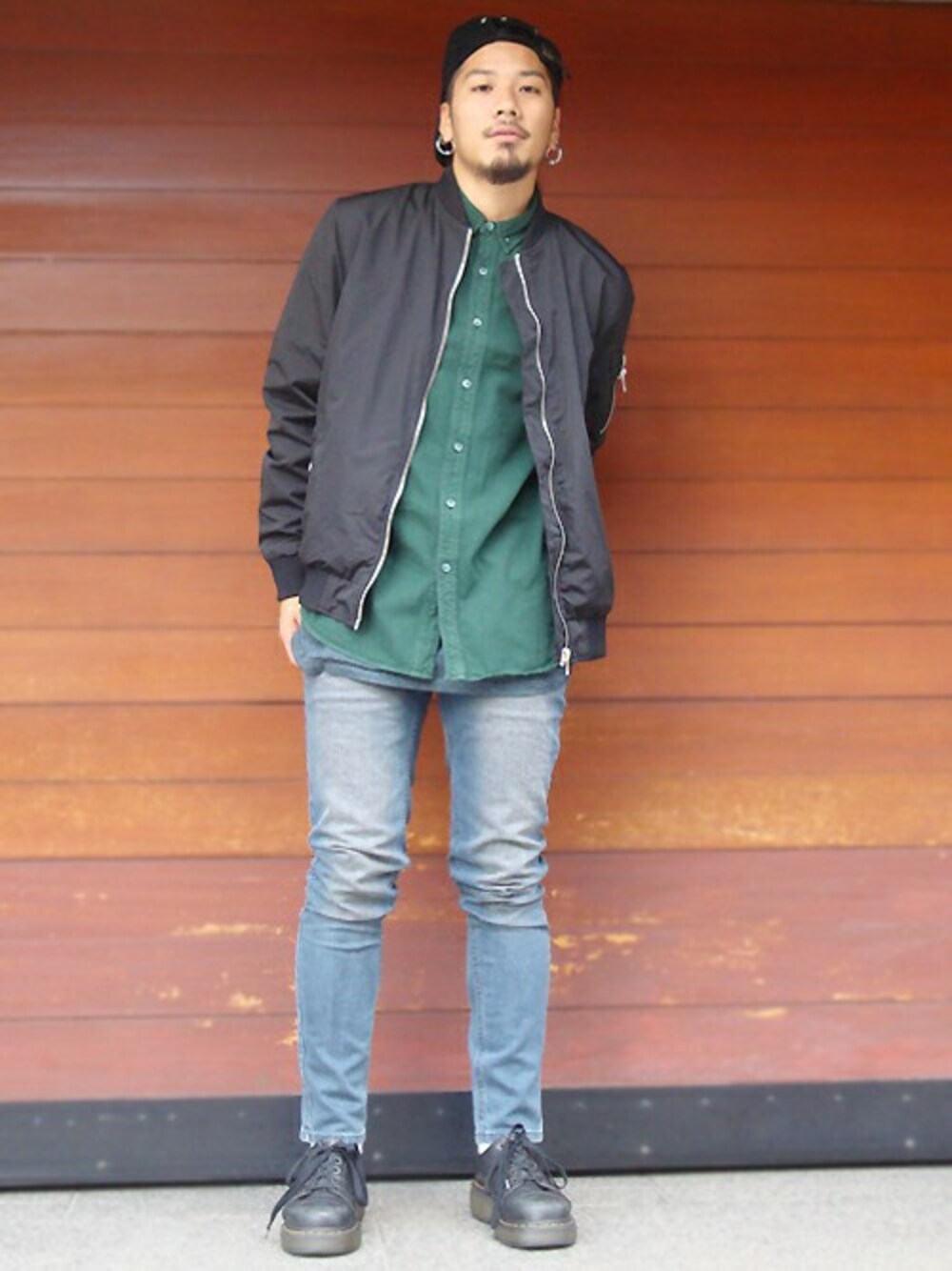かじのブルゾン「BLACK LIGHTWEIGHT MA1 BOMBER JACKET/ブラック ライトウエイト MA1 ボンバージャケット」を使ったコーディネート